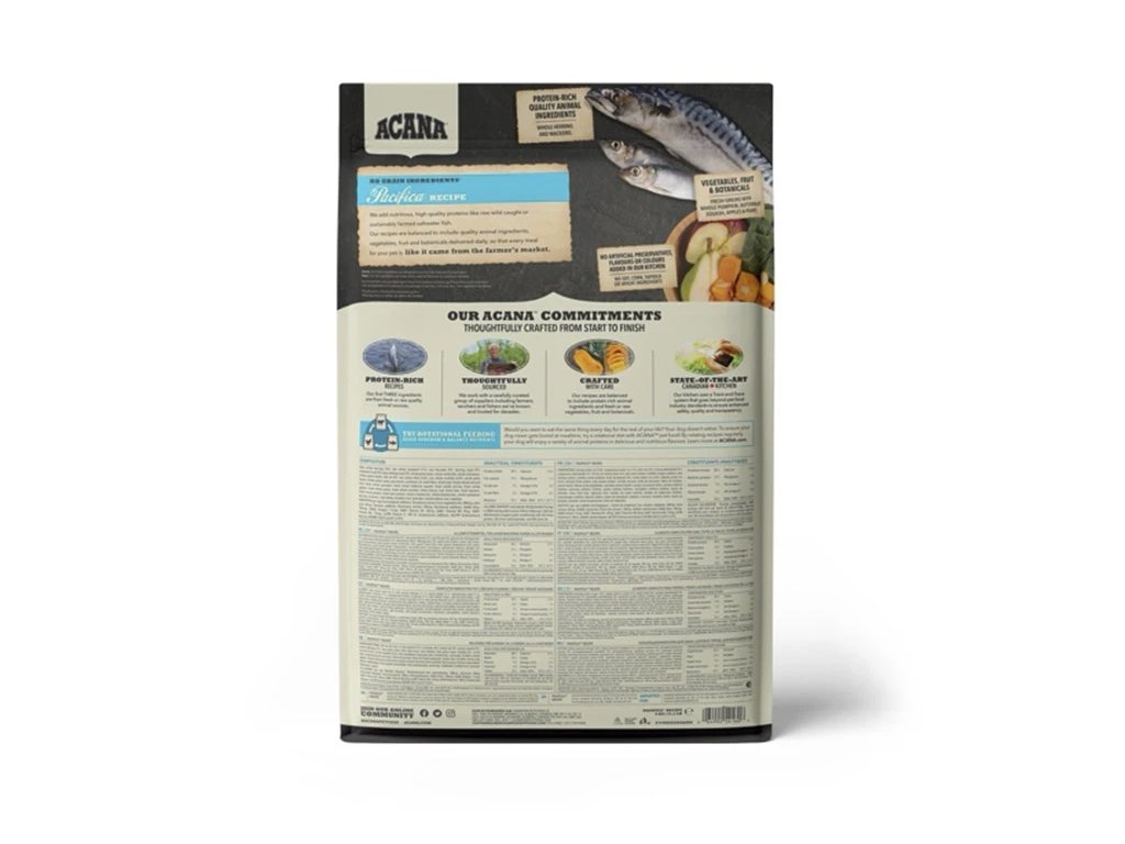 SLOŽENÍ: celý syrový sleď (14 %), celá syrová makrela (11 %), syrový platýs (9 %), dehydrovaný sleď (7 %), dehydrovaná makrela (7 %), dehydrovaná treska modravá (7 %), celý zelený hrách, celá červená čočka, celá cizrna, celá zelená čočka, rybí olej (6 %), syrový celý hejk (4,5 %), celý syrový okouník (4,5 %), celé fazole pinto, celý žlutý hrách, hráškový škrob, slunečnicový olej, vláknina z čočky, sušená řasa, mrazem sušená treska obecná a játra, celá čerstvá dýně, čerstvá celá máslová dýně, čerstvá celá mrkev, celá čerstvá jablka, čerstvé celé hrušky, čerstvá celá cuketa, sušený kořen čekanky, čerstvá kapusta, čerstvý špenát, čerstvé listy tuřínu, čerstvé listy červené řepy, celé brusinky, celé borůvky, celé plody muchovníku, kurkuma, ostropestřec, kořen lopuchu, levandule, kořen ibišku, šípky