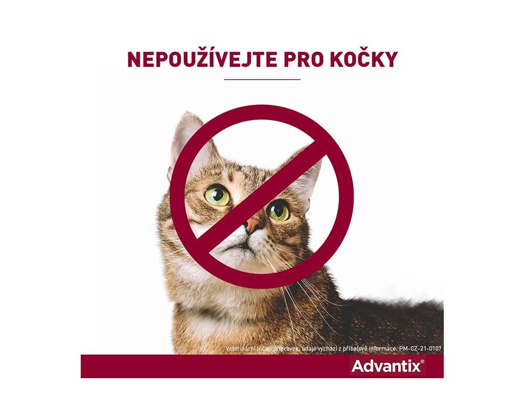 UPOZORNĚNÍ: Nepoužívejte na kočky! Obsahuje permethrin, který je pro kočky toxický. Nepoužívat u nemocných zvířat (celkové onemocnění, horečka) a zvířat v rekonvalescenci. Použijte vhodnou velikost balení dle skutečné hmotnosti psa. Nepoužívat v případě přecitlivělosti na léčivou látku nebo na některou z pomocných látek. Minimální interval mezi ošetřeními je 4 týdny. Používejte pouze v souladu s návodem.