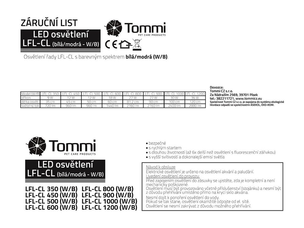 Akvarijní osvětlení TOMMI LED LF-LC-1000 30W (100cm) (modrobílé spektrum)