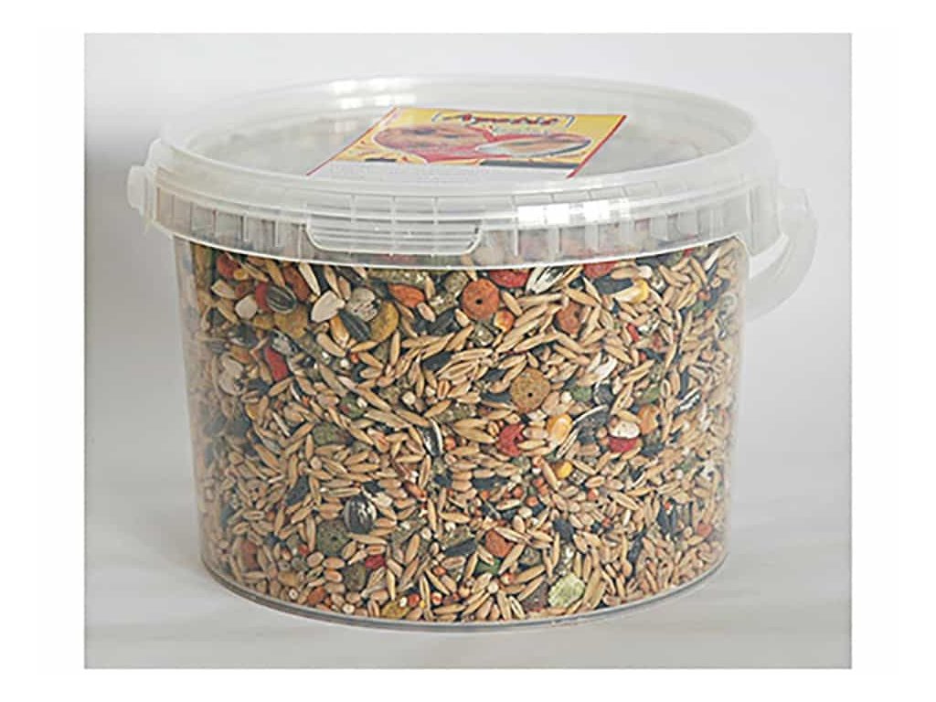 Složení: Extrudované obilniny, slunečnice černá, slunečnice žíhaná, ječmen, pšenice, oves, kukuřice, granule - úsušky pícnin 5 mm.
