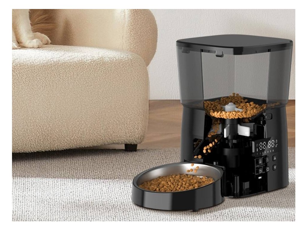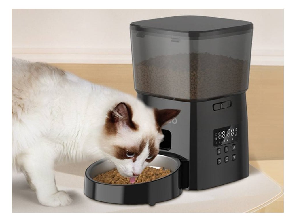 - pomocí vyhrazených tlačítek si naplánujete čas krmení a počet jídel na den