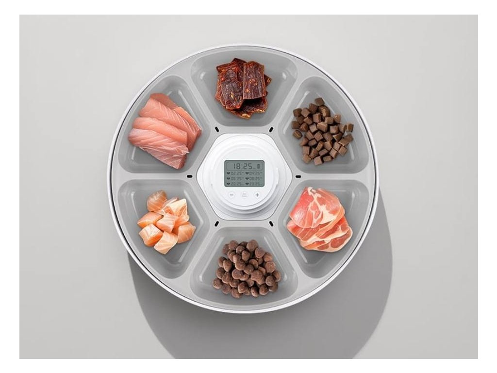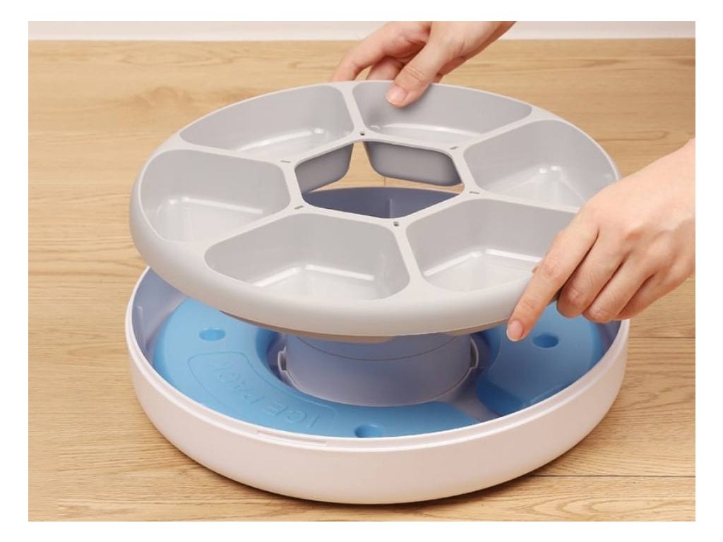 - dvě vestavěné ledové kazety fungují jako mini lednička a udržují nízkou teplotu krmiva až po dobu 24 hodin