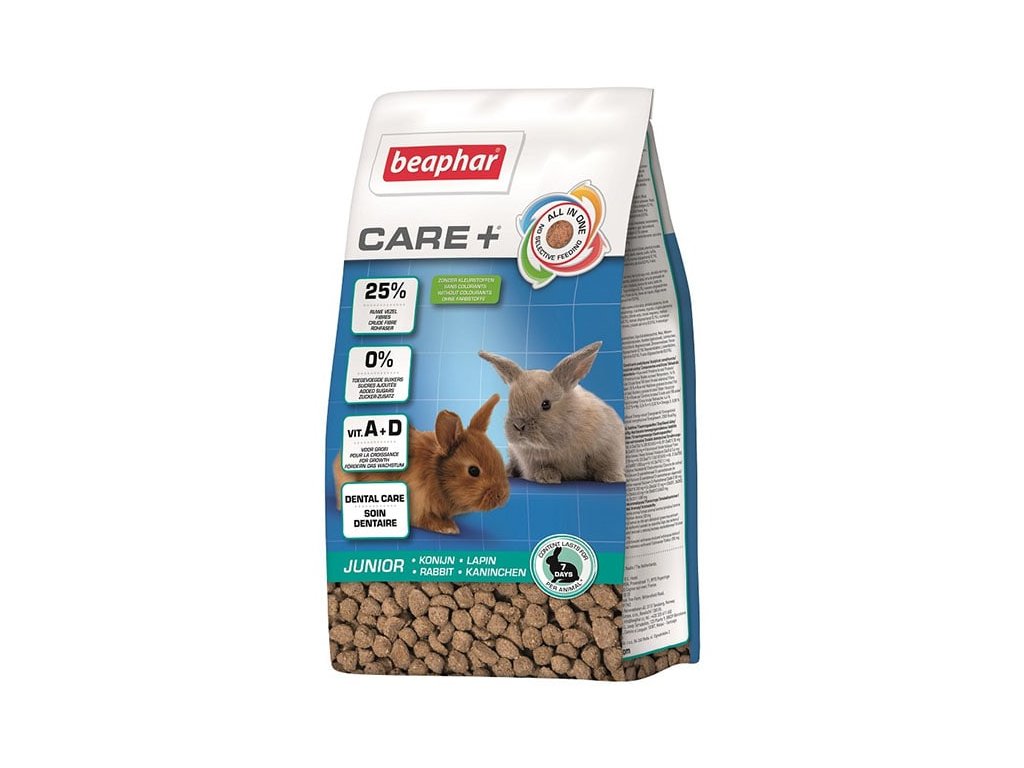 NÁVOD K POUŽITÍ: Do 6 týdnů věku míchejte malé množství krmiva Care+ s původním krmivem, postupně přejděte jen na Care+ králík junior. Od 10. měsíce postupně přejděte na krmivo pro dospělé králíky Care+.
