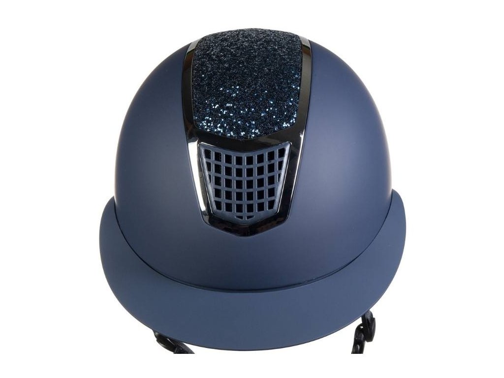 Elegantní matná jezdecká helma s třpytivým zdobením a stříbrným detailem v přední části. Helma splňuje Evropskou normu EN 1384:2023, takže jezdci zaručuje maximální úroveň bezpečnosti. Účinný ventilační systém umožňuje dobrou cirkulaci vzduchu, měkké vnitřní polstrování zaručuje komfortní nošení a pohodlí. Kolečko v zadní části helmy slouží k nastavení velikosti a individuálnímu přizpůsobení každému tvaru hlavy. Aby přilba správně držela, je nutné ji nastavit pomocí kolečka a zapínání pod bradou tak, aby byl její pohyb na hlavě minimální. Helma je dodávána v praktickém látkovém pytlíku vhodném pro skladování.