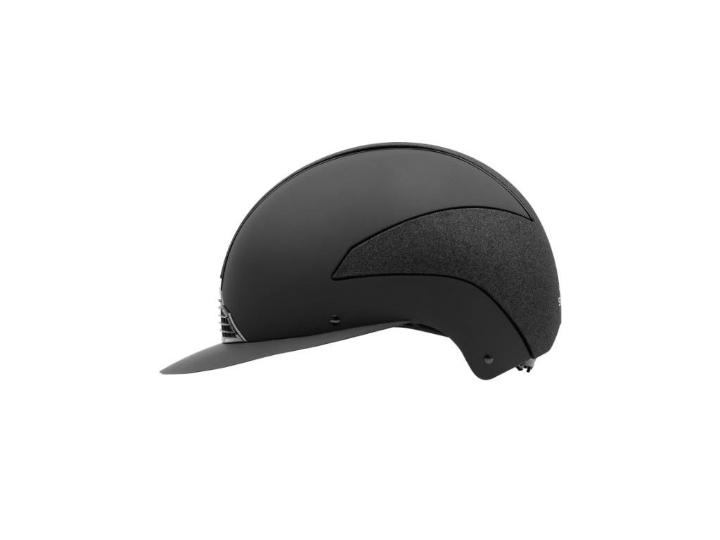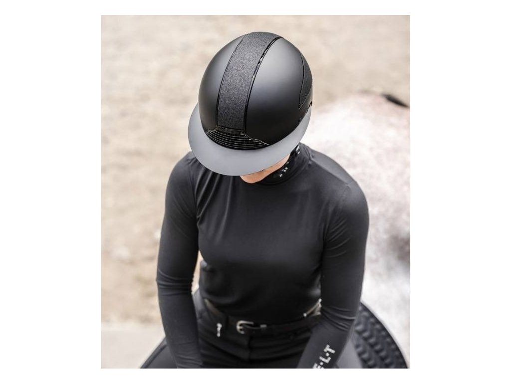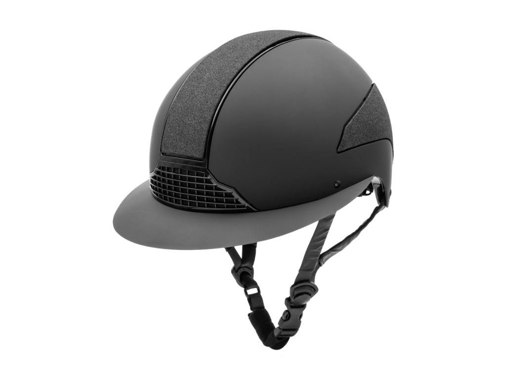 Bezpečnostní helma SWING H24 Lady Shine s velkým dámským kšiltem, testovaná podle aktuální normy EN 1384:2023, spojuje maximální bezpečnost, komfort a elegantní sportovní design. Díky výškově i šířkově nastavitelnému systému se dokonale přizpůsobí tvaru hlavy, zatímco integrované ventilační otvory s možností regulace zajišťují optimální proudění vzduchu. Vnitřní polstrování je snadno odnímatelné a pratelné. Flexibilní kšilt a přední mřížka s bezpečnostní sítí pak poskytují další ochranu a stabilitu. Přilba je vybavena 3bodovým upínacím systémem, takže nabízí bezkonkurenční pohodlí i bezpečnost při parkuru, drezuře i všestrannosti.
