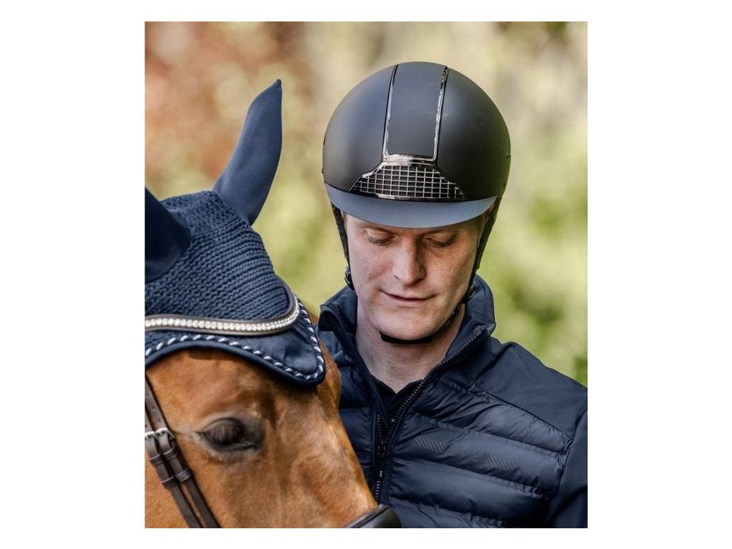 Bezpečnostní helma SWING H24 testovaná podle aktuální normy EN 1384:2023, spojuje maximální bezpečnost, komfort a elegantní sportovní design. Díky výškově i šířkově nastavitelnému systému se dokonale přizpůsobí tvaru hlavy, zatímco integrované ventilační otvory s možností regulace zajišťují optimální proudění vzduchu. Vnitřní polstrování je snadno odnímatelné a pratelné. Flexibilní kšilt a přední mřížka s bezpečnostní sítí pak poskytují další ochranu a stabilitu. Přilba je vybavena 3bodovým upínacím systémem, takže nabízí bezkonkurenční pohodlí i bezpečnost při parkuru, drezuře i všestrannosti.