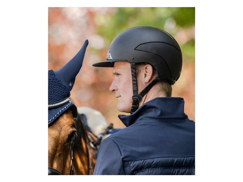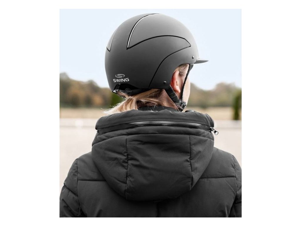 Bezpečnostní helma SWING H24 testovaná podle aktuální normy EN 1384:2023, spojuje maximální bezpečnost, komfort a elegantní sportovní design. Díky výškově i šířkově nastavitelnému systému se dokonale přizpůsobí tvaru hlavy, zatímco integrované ventilační otvory s možností regulace zajišťují optimální proudění vzduchu. Vnitřní polstrování je snadno odnímatelné a pratelné. Flexibilní kšilt a přední mřížka s bezpečnostní sítí pak poskytují další ochranu a stabilitu. Přilba je vybavena 3bodovým upínacím systémem, takže nabízí bezkonkurenční pohodlí i bezpečnost při parkuru, drezuře i všestrannosti.