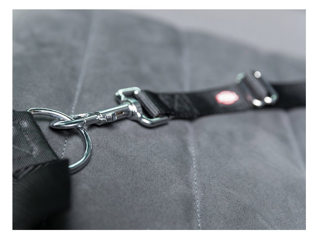 UPOZORNĚNÍ: nepřipínejte k obojku, ale pouze k postroji, při prudkém zabrždění by se pes připnutý k obojku mohl snadněji zranit; není vhodné pro vozy značky Ford a Volvo