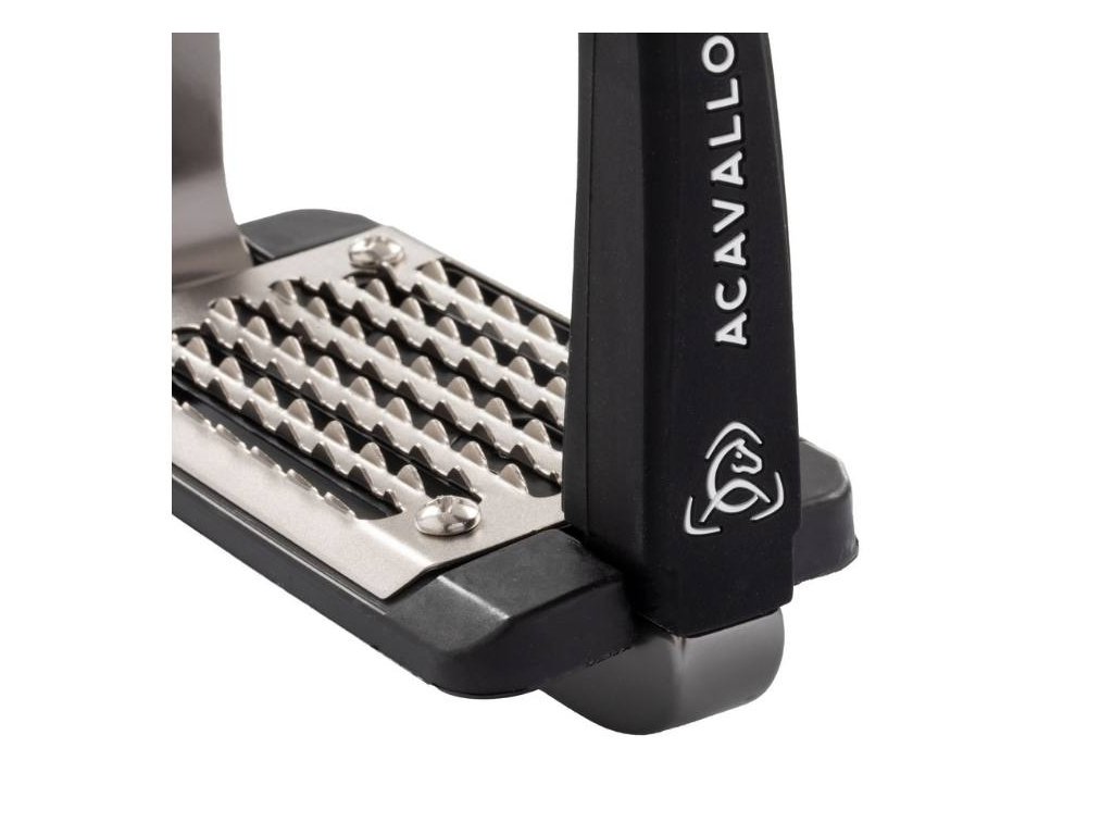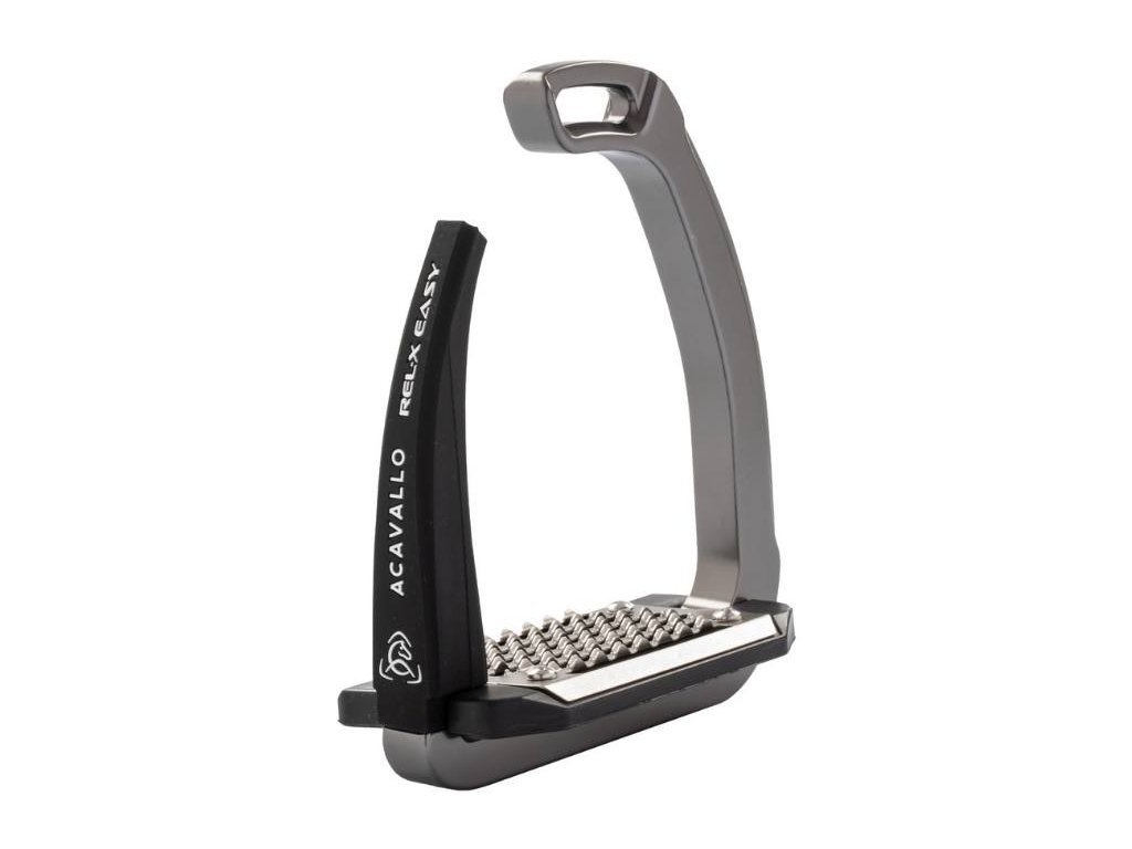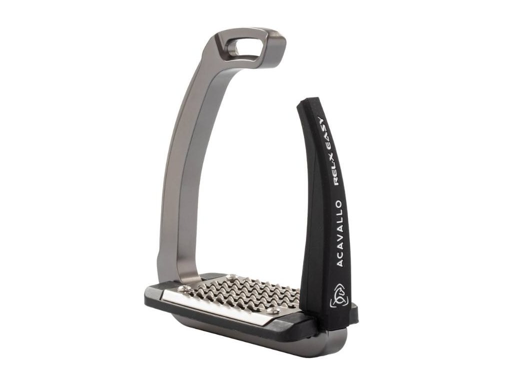 Bezpečnostní třmeny Acavallo Rel-X EASY poskytují jezdci maximální komfort díky patentovanému bočnímu uvolňovacímu mechanismu a pokročilé konstrukci z kvalitního kovu a pružných polymerů. Vnější silikonové rameno se při pádu otevře a bezpečně uvolní nohu. Extra široká nášlapná plocha z nerezové oceli tlumí nárazy, zajišťuje výborný grip a výrazně uvolňuje kotníky, kolena i boky.