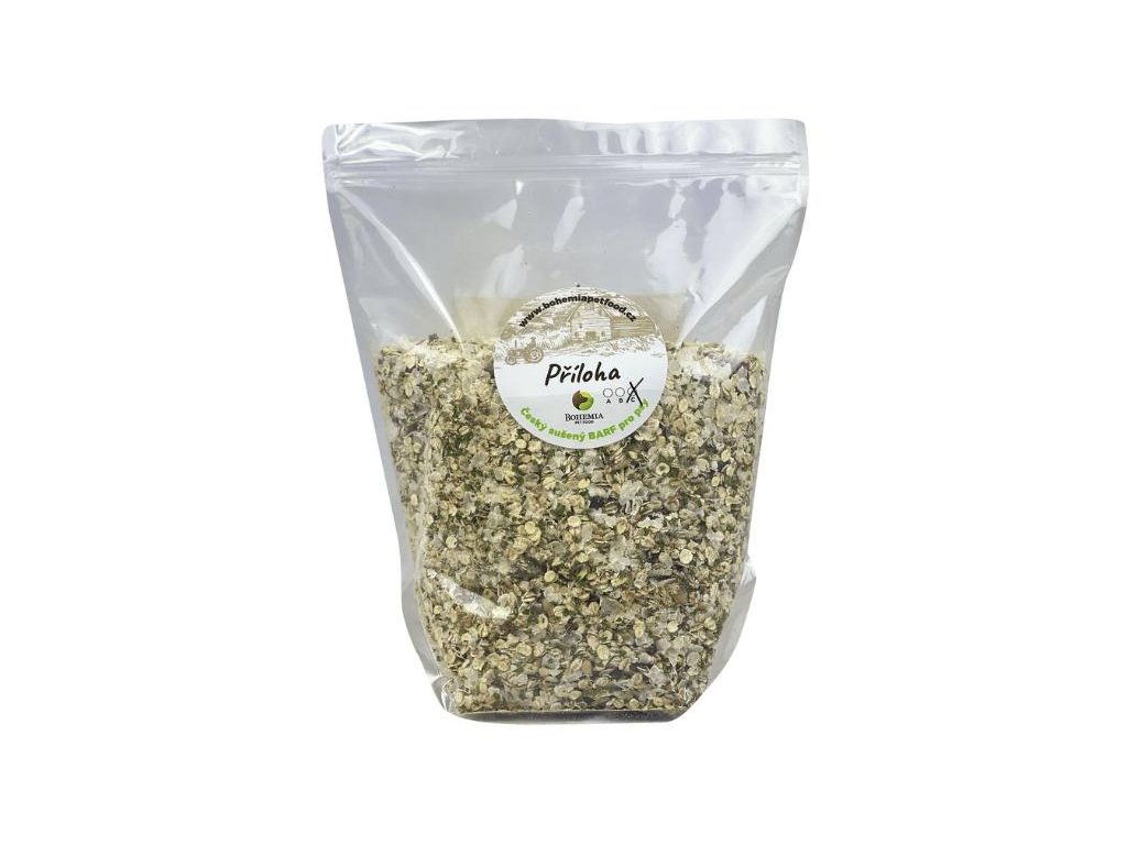 - příloha splňuje optimální hladiny bílkovin, minerálů, vitamínů a zejména hladiny zdraví prospěšných tuků ze semen, ořechů a kozího mléka