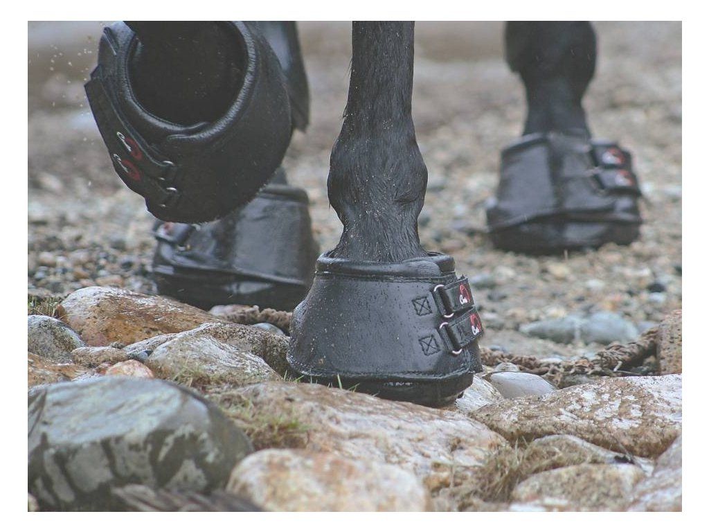 Mají anatomicky tvarovanou zadní část, která účinně chrání patky. Horní okraj je obšitý tunýlkem z měkké kůže, vyplněným pěnou. Nášlapná část z termoplastického uretanu zajišťuje koni stabilitu a boty díky ní nekloužou.