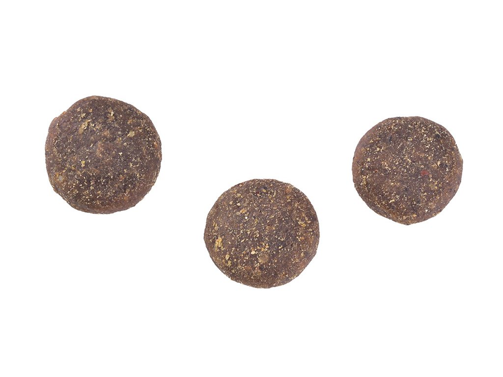 SLOŽENÍ: čerstvý krocan (60 %), hrách, kuřecí tuk (konzervovaný tokoferoly), cizrna, sušená jablka, červená čočka (4 %), dýně, přírodní aroma, lososový olej (2 %), mrkev, sušené vaječné skořápky, protein okřehku (0,5 %), spirulina (0,3 %), sušený rakytník řešetlákový (0,2 %), sušený kořen zázvoru (0,1 %), sušené borůvky (0,1 %), sušený rozmarýn (0,1 %), sušené brusinky (0,1 %), sušený tymián (0,1 %), glukosamin (0,026 %), slávka zelenoústá (0,025 %), chondroitin sulfát (0,016 %), pivovarské kvasnice (zdroj mannanoligosacharidů, 0,015 %), kořen čekanky (zdroj fruktooligosacharidů, 0,01 %), juka schidigera (0,01 %)