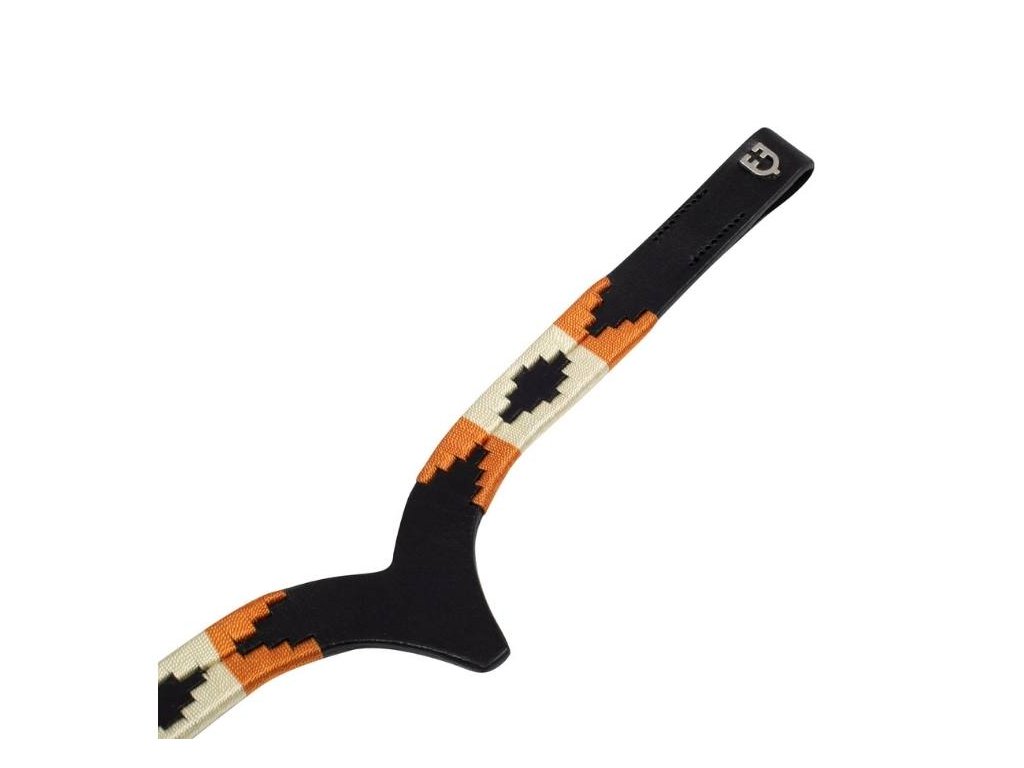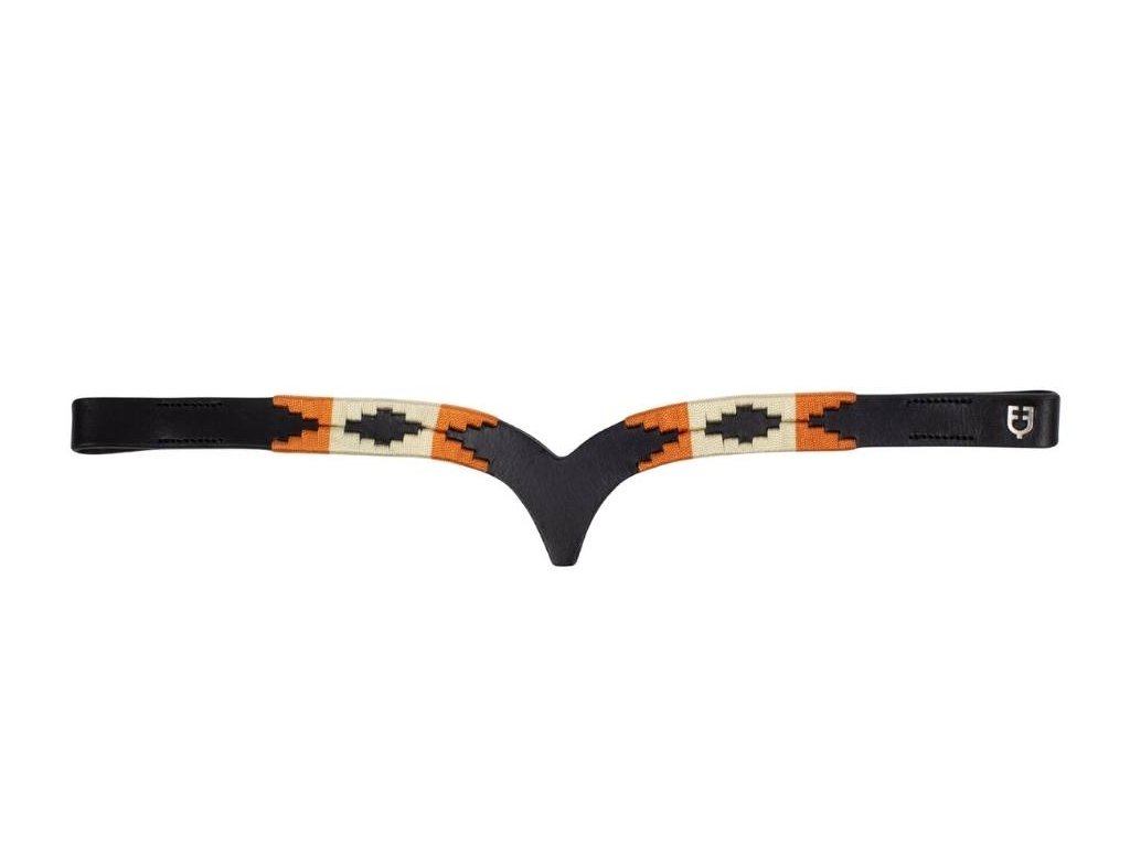 Tvarovaná čelenka z měkké kůže se vzorem “Navajo”. Jednoduchá a elegantní zároveň. S logem výrobce Equestro na jedné straně.
