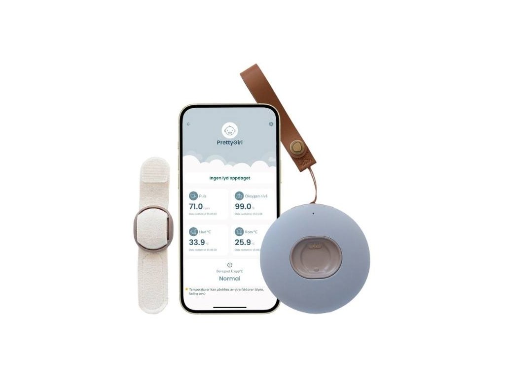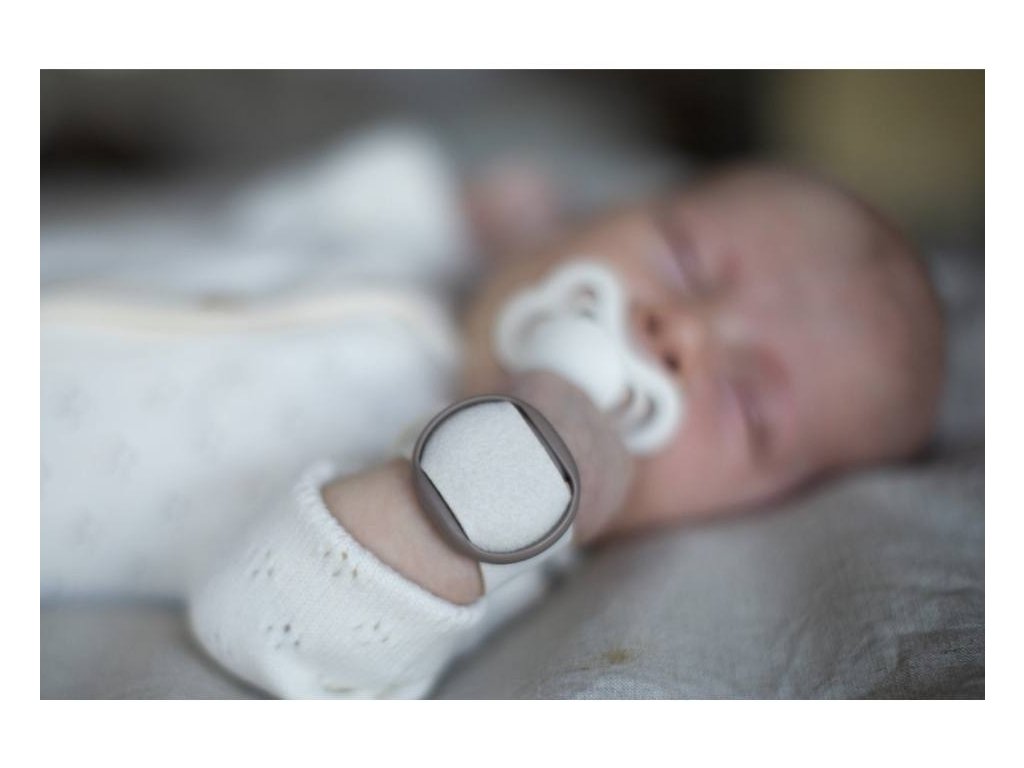 - pomocí pohodlného senzoru připevněného na paži nebo noze dítěte