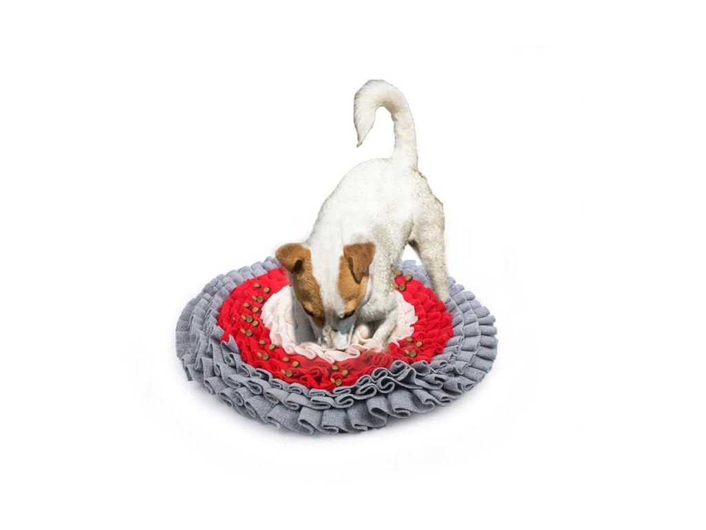 NÁŠ TIP: pokud má Váš pejsek problém s hltáním jídla, můžete mu v koberečku schovat granule a tím ho přinutit při jídle zpomalit