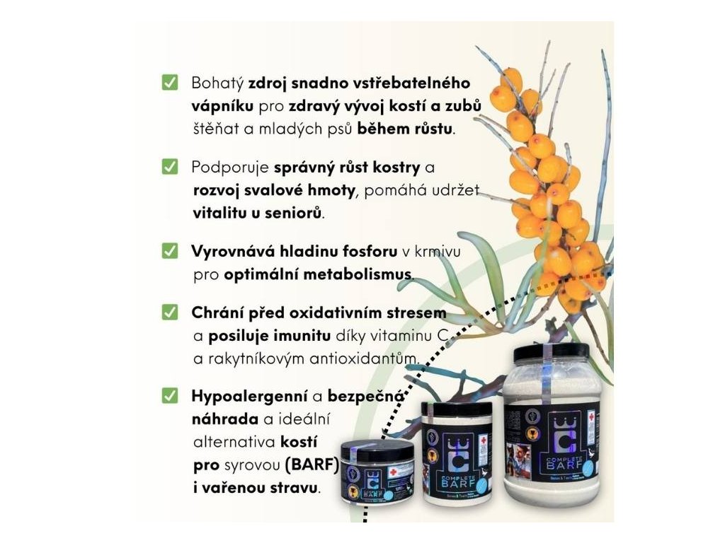 SLOŽENÍ: mořská řasa Lithothamnium calcareum, konopné semínko, rakytník plod, vitamin C