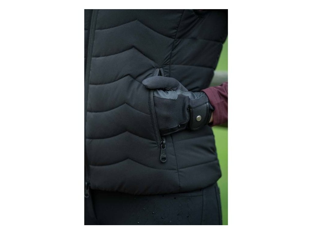 Powerbanka s kapacitou 5 000 mA zajistí vyhřívání až po dobu čtyř hodin. Vesta má navíc výplň z lehké vaty a díky přiléhavému střihu nabízí ještě lepší udržení tepla. Součástí je dvoucestný zip, odnímatelná kapuce a dvě vnější kapsy na zip.