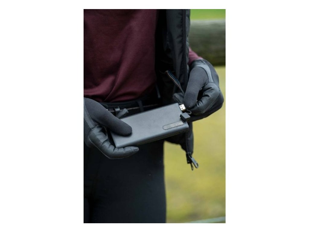 Powerbanka s kapacitou 5 000 mA zajistí vyhřívání až po dobu čtyř hodin. Vesta má navíc výplň z lehké vaty a díky přiléhavému střihu nabízí ještě lepší udržení tepla. Součástí je dvoucestný zip, odnímatelná kapuce a dvě vnější kapsy na zip.