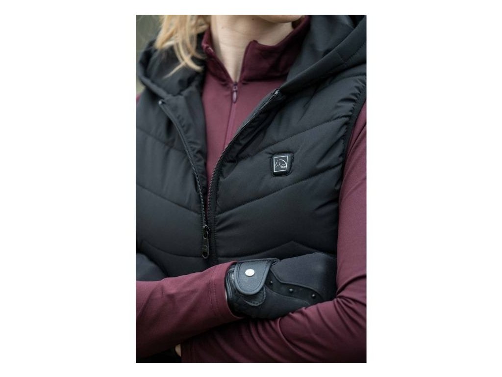 Powerbanka s kapacitou 5 000 mA zajistí vyhřívání až po dobu čtyř hodin. Vesta má navíc výplň z lehké vaty a díky přiléhavému střihu nabízí ještě lepší udržení tepla. Součástí je dvoucestný zip, odnímatelná kapuce a dvě vnější kapsy na zip.