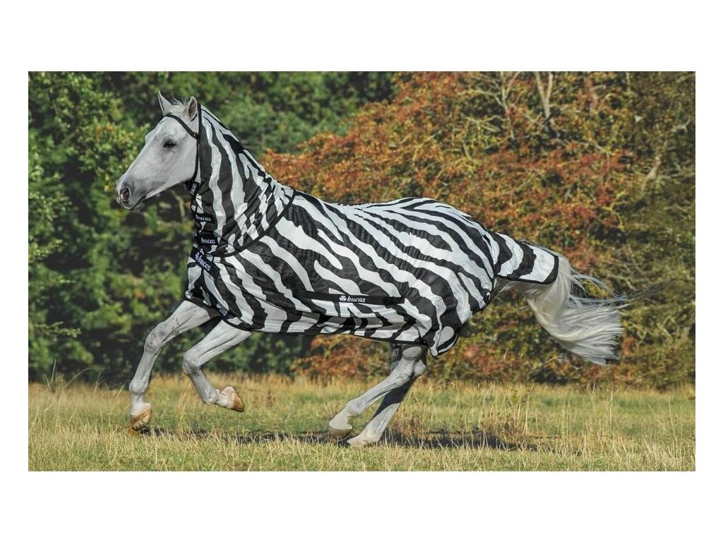 Výrobce Bucas představuje nejoblíbenější deky proti hmyzu řady Buzz-Off, přičemž tento model Buzz-Off Zebra Full Neck je dodáván s integrovaným krčním dílem, které nelze odepnout. Výzkumy ukázaly, že zebří pruhy účinně odpuzují hmyz a působí na něj matoucím dojmem.