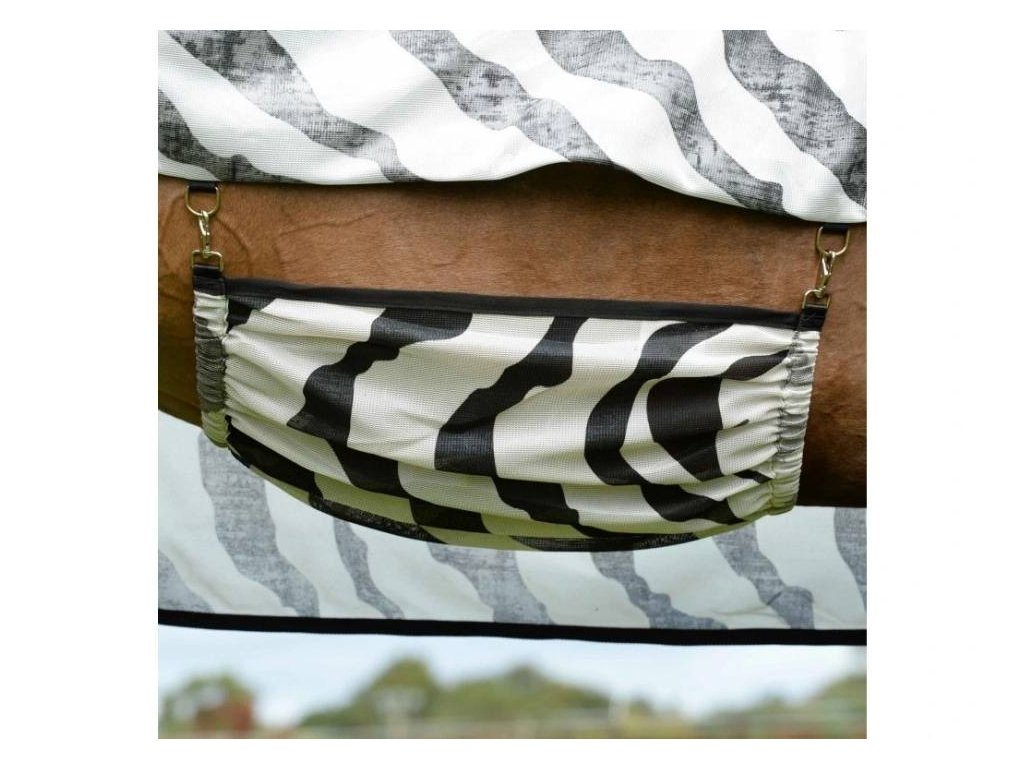 Výrobce Bucas představuje nejoblíbenější deky proti hmyzu řady Buzz-Off, přičemž tento model Buzz-Off Zebra & Neck je dodáván s odnímatelným krčním dílem. Výzkum ukázal, že zebří pruhy účinně odpuzují hmyz a působí na něj matoucím dojmem.
