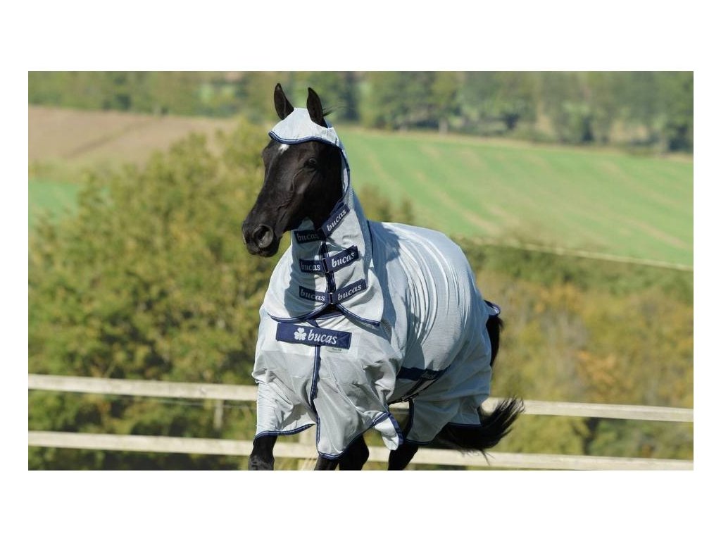 Výrobce Bucas představuje nejoblíbenější deky proti hmyzu řady Buzz-Off, tento model Buzz-Off X Full Neck je dodáván s integrovaným krčním dílem (nelze odepnout). Řada dek Buzz-Off X je vyrobena z extra hluboké lehké síťoviny, která poskytuje účinnou ochranu před hmyzem a zároveň 75 % ochranu před UV zářením. Síťový materiál je vysoce odolný, jemný a efektivně odráží sluneční záření.
