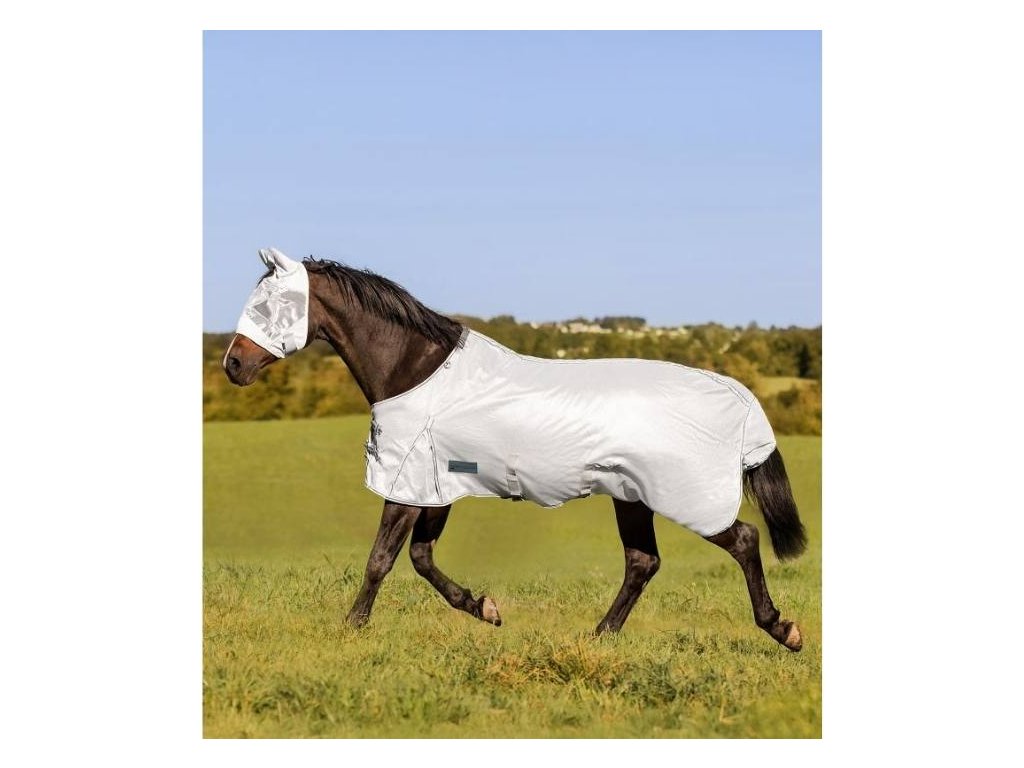Tato kvalitní deka ze síťoviny chrání koně spolehlivě před dotěrným hmyzem. Je vyrobena z lehkého polyesterového materiálu odolného proti roztržení, který zajišťuje dlouhou životnost. Plné pokrytí břicha poskytuje efektivní ochranu. Deka je dále opatřena dvojitým předním zapínáním a popruhem pod ocas. Lze k ní připevnit krční díl.