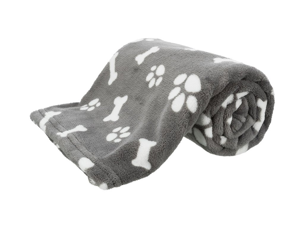 Deka TRIXIE Kenny plyšová šedá s kostičkami a packami 75x100cm