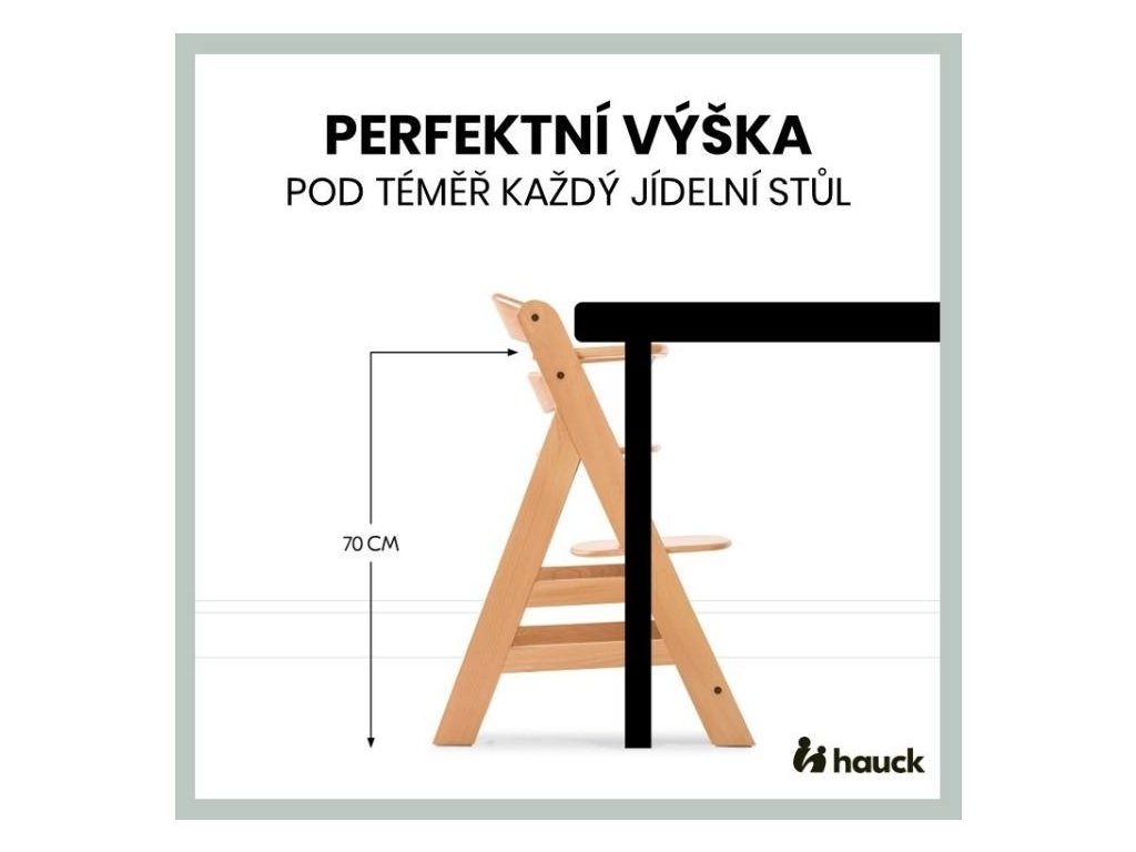 - s výškou 70 cm včetně ochranného oblouku se jídelní židlička Alpha+ snadno vejde pod téměř každý stůl