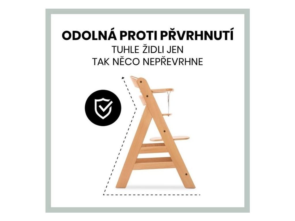 - v souladu s normami: EN 14988:2017+A1:2020 (dětské vysoké židle) a EN 12520:2016 (s křesílkem – požadavky na bytový sedací nábytek), EN 17191:2021 (dětská židle – požadavky na sedací nábytek pro děti), EN 12790-1:2023 (Opěrná lehátka určená pro děti do doby, než si začnou sedat)