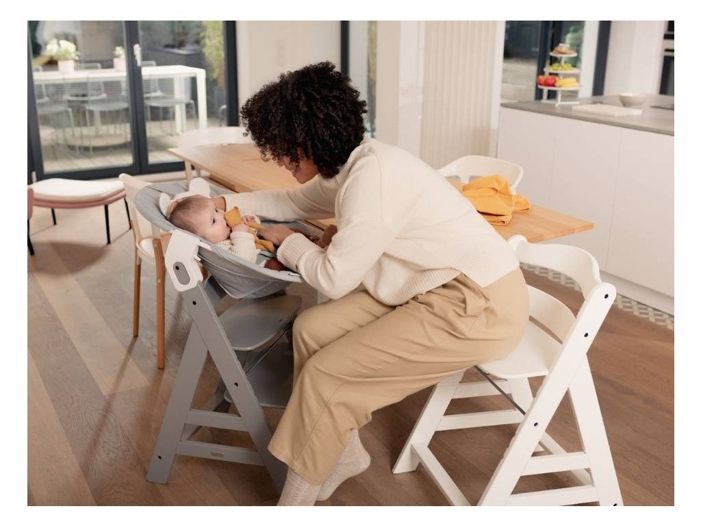 - vysoká jídelní židlička v kombinaci s novorozeneckým lehátkem