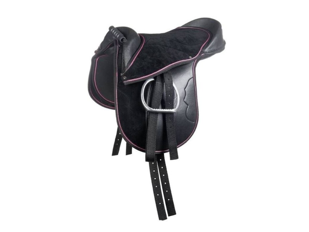 - dětské sedlo dodávané s podbřišníkem, třmeny a třmenovými řemeny