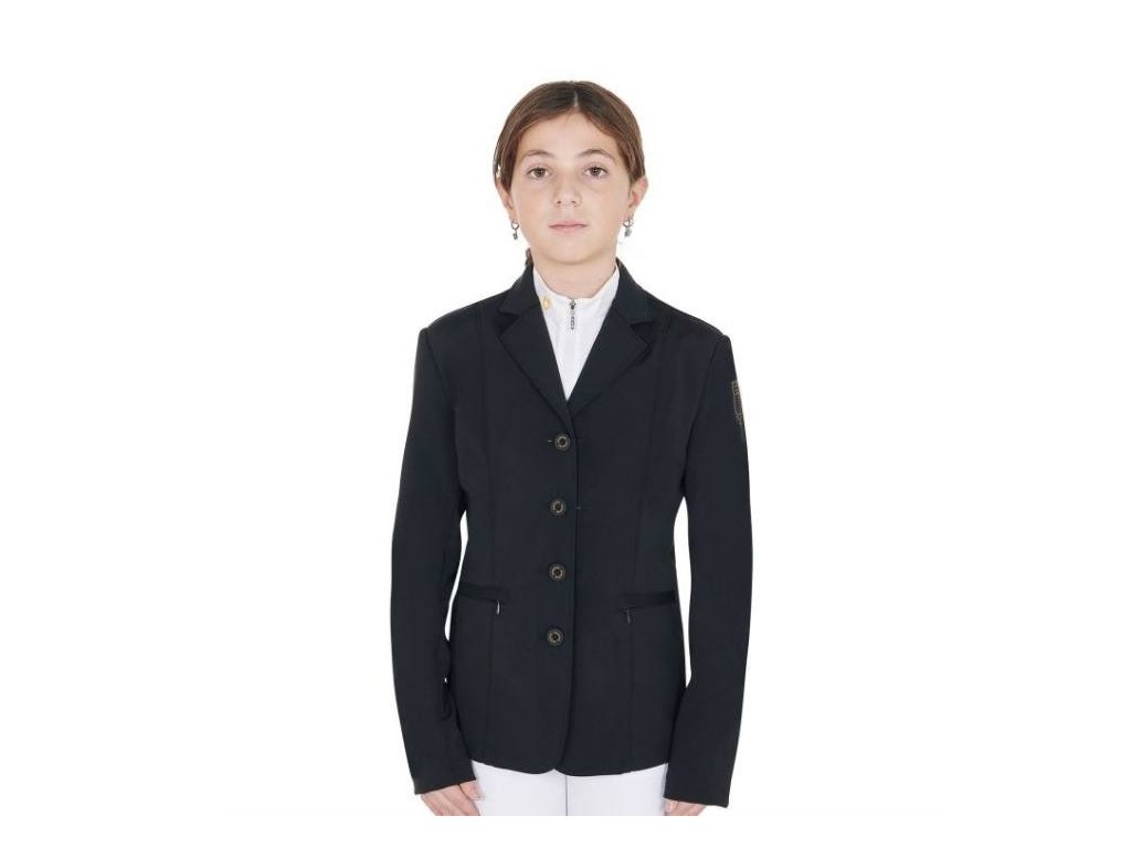 Dětské závodní sako EQUESTRO čtyři knoflíky černé (10 roků)