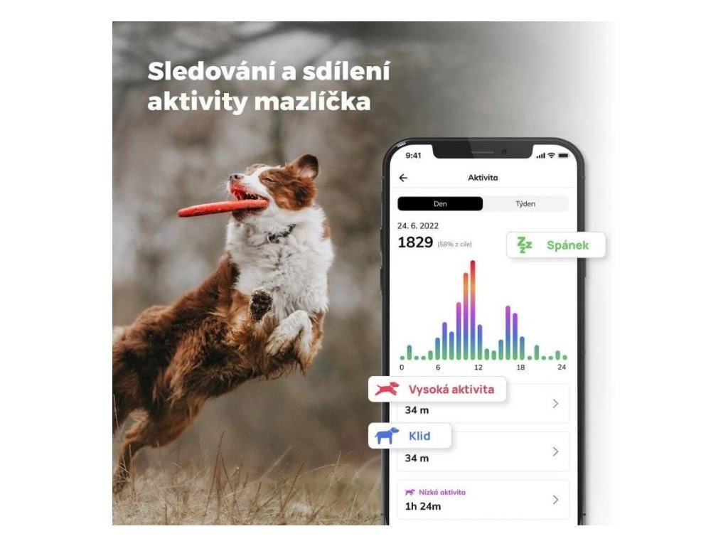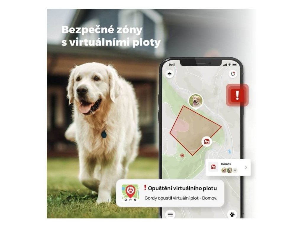 Virtuální plot a domácí Wi-Fi zóna pomáhají chránit před útěky – v okamžiku, kdy pejsek opustí vymezený prostor, vás aplikace upozorní. V tzv. „Guardian“ režimu vydrží baterie až měsíc, a plné nabití zabere méně než dvě hodiny. Lokátor můžete sdílet s dalšími členy domácnosti a plánovat s nimi společné trasy a výlety.