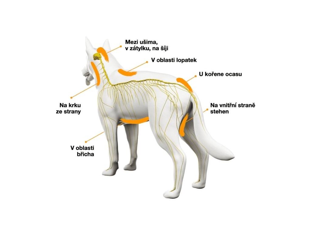 Místo aplikace zvíře optimálně nabídne samo po seznámení se s přípravkem a analýze očicháním.