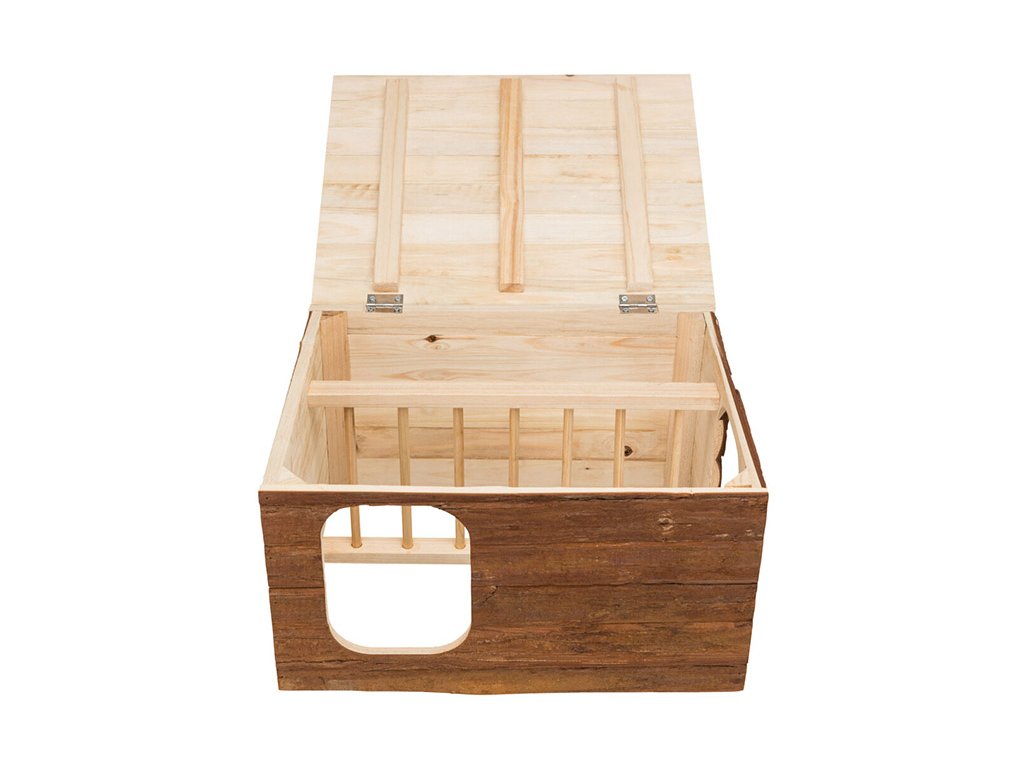 - vyrobeno z jehličnatého dřeva bez pryskyřičných kanálků, protože pryskyřice může být pro některá zvířata jedovatá
