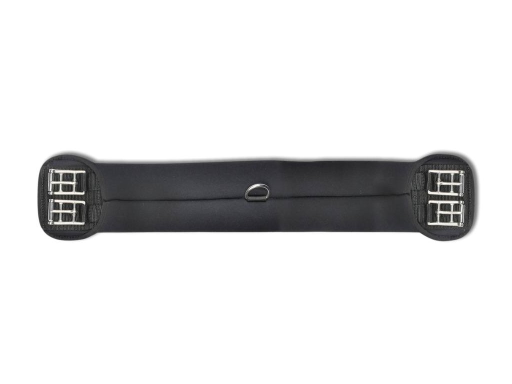 Drezurní podbřišník z paměťové pěny, který díky měkkému a tlustému materiálu zajišťuje svobodu pohybu, zamezuje oděrkám a vzniku tlakových bodů. Bez elastického zakončení, s nerezovými válečkovými přezkami a D kroužkem pro upevnění pomocných otěží.