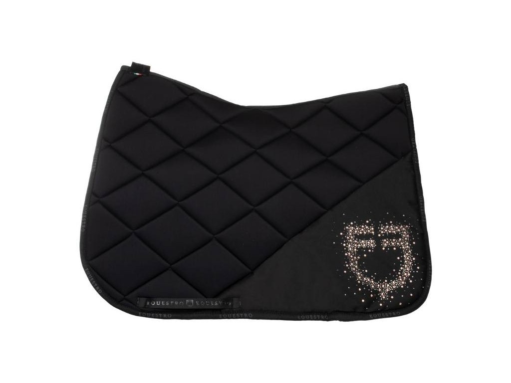Drezurní podsedlová dečka EQUESTRO Rhinestone Logo černá DR (DOPRODEJ)