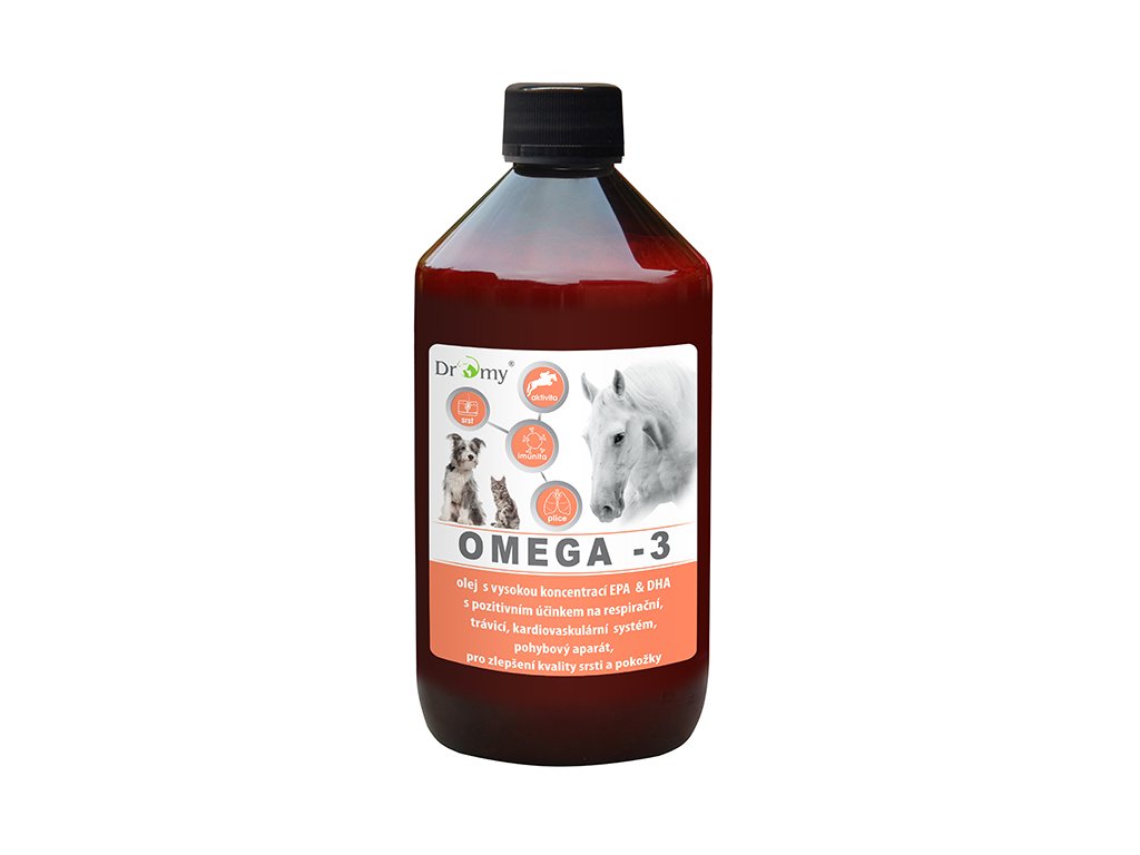 - omega 3 olej s vysokou koncentrací EPA a DHA pro psy, kočky, koně a zvířata v zájmových chovech