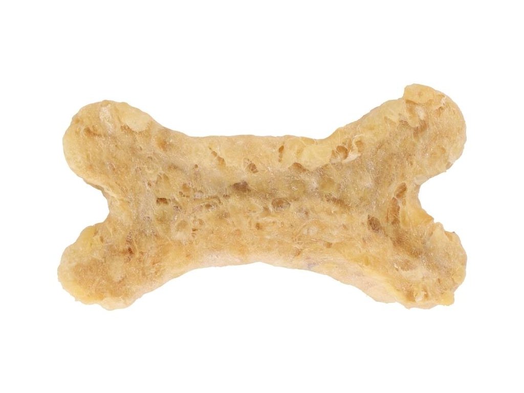 SLOŽENÍ: hovězí kůže štěpená (58 %), hovězí kolagen (35 %), drůbeží játra (6,5 %), inulin (čekanka) (0,5%), vápník (0,03%), juka (80 mg/kg)