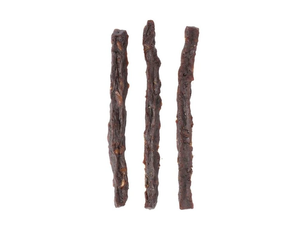 SLOŽENÍ: jačí maso a srdce (77 %), jačí měkké kosti (10 %), glycerin, škrob, pšeničná mouka, rostlinné bílkoviny, chlorid sodn