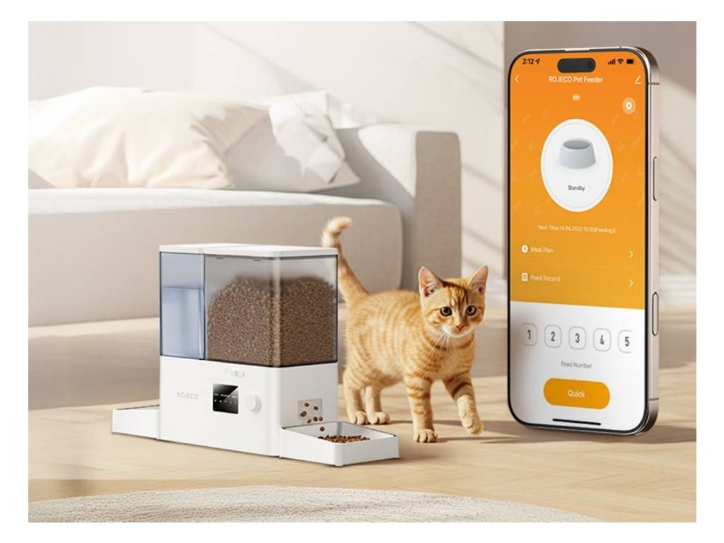 - můžete nastavit plán krmení, upravovat porce a přijímat oznámení o nízkém množství krmiva nebo jakýchkoli problémech se zařízením
