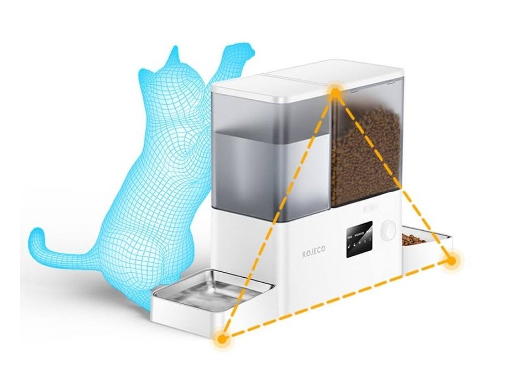 Fontána a dávkovač krmiva ROJECO 2v1 s WiFi bílá 30x28x34cm