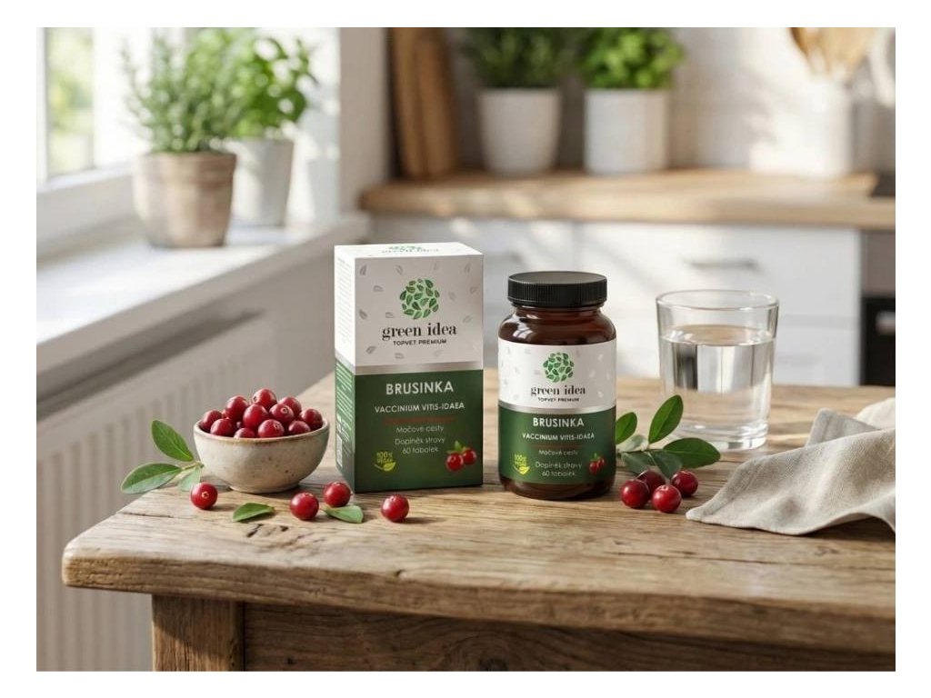 SLOŽENÍ: Brusnice brusinka (Vaccinium Vitis-idaea) standardizovaný extrakt z plodu (Proanthocyanidiny 10 %), vitamín C (kyselina L-askorbová), mikrokrystalická celulóza (plnidlo), stearan hořečnatý rostlinného původu (plnidlo), vegetariánská kapsle