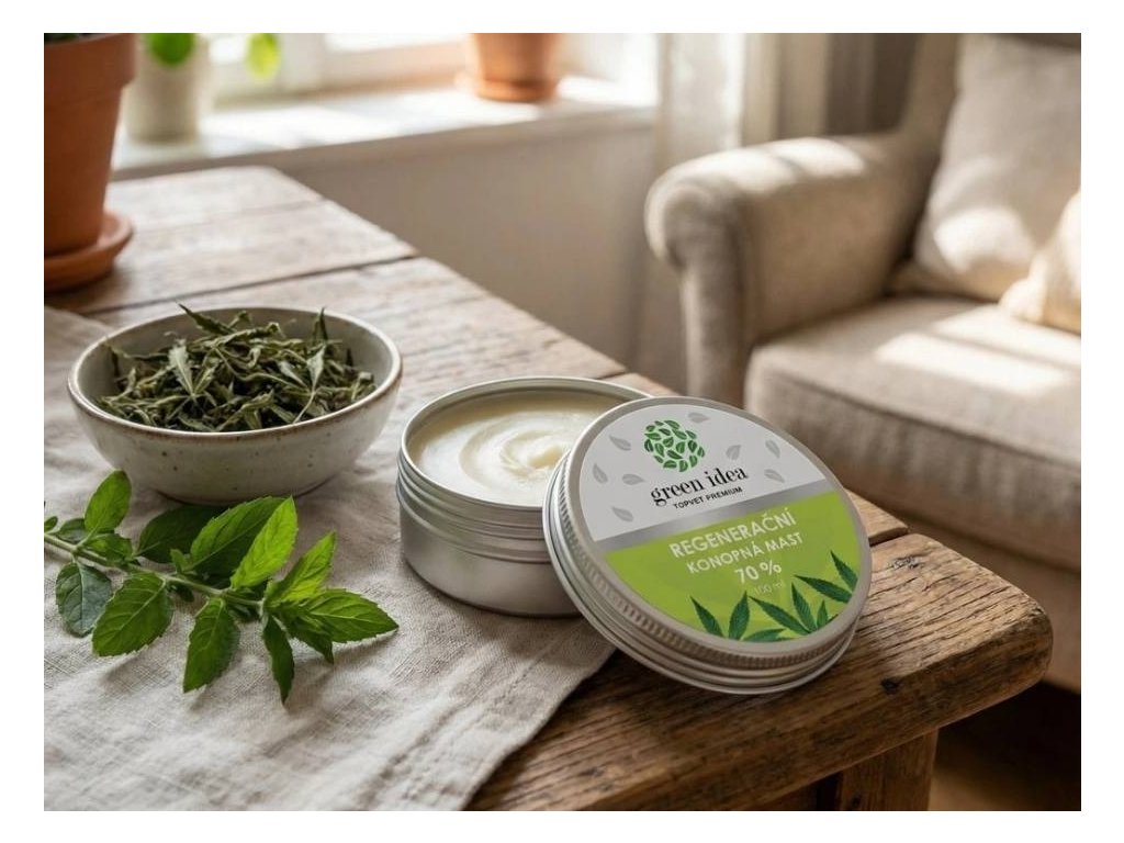- konopná regenerační mast s obsahem 70 % konopného oleje