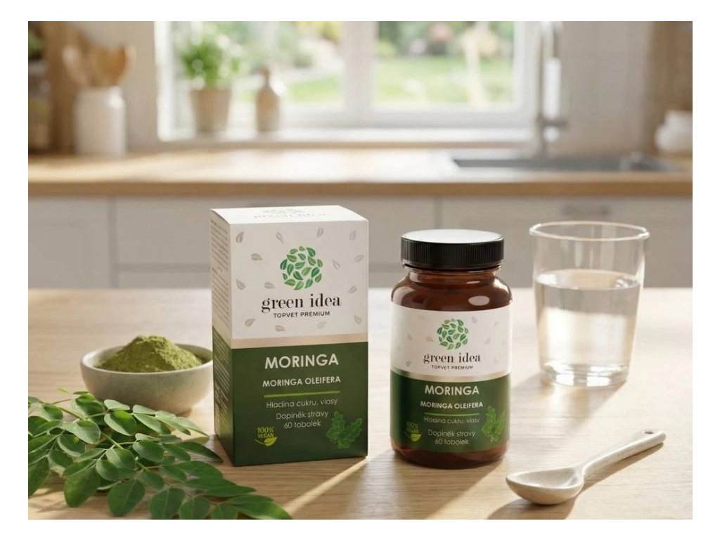 SLOŽENÍ: Moringa (Moringa oleifera) extrakt z listu (10:1), mikrokrystalická celulóza (plnidlo), stearan hořečnatý (plnidlo), vegetariánská kapsle