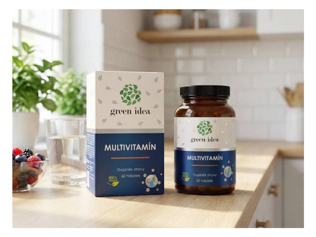 SLOŽENÍ: Vitamín C (kyselina askorbová), B-komplex (B1 – Thiamin, B2 – Riboflavin, B5 - Kys. pantothenová, B6 – Pyridoxin, B3 – Kys. nikotinová, Vitamin H – D-Biotin, B9 – Kys. listová, B12 – Cyanocobalamin), Vitamín E (dl-alpha-Tocopherol), mikrokrystalická celulóza (plnidlo), stearan hořečnatý (plnidlo), vegetariánská kapsle