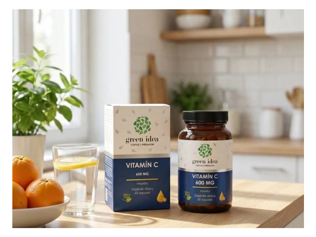 SLOŽENÍ: kyselina askorbová (Vitamín C), stearan hořečnatý (plnidlo), vegetariánská kapsle