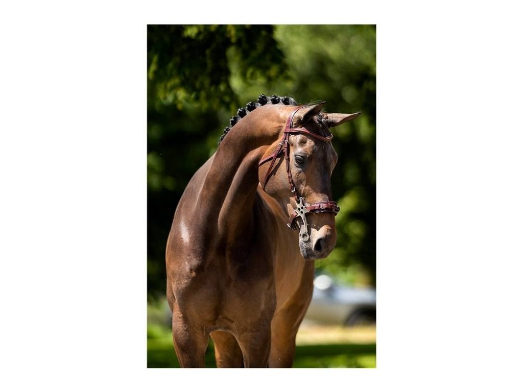 Vyrobena je z kvalitní, pružné a odolné anglické kůže, doplněné o lesklé kovové kování, které dodává uzdečce elegantní vzhled.