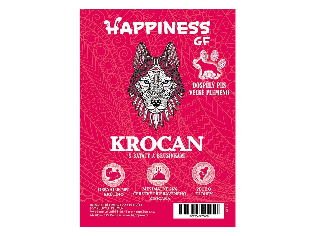 HAPPINESS Grain Free Adult Large - krocan s batáty a brusinkami 12kg (DOPRODEJ EXP. 6.1.2025)